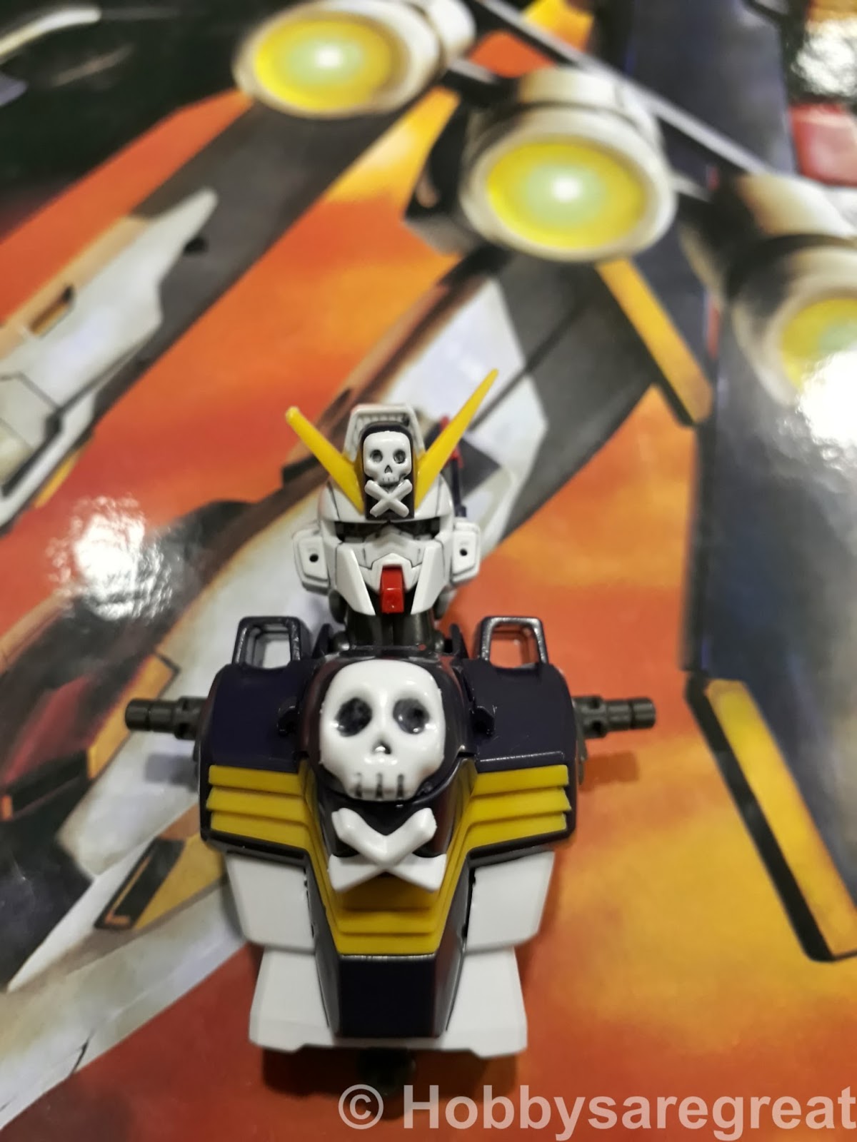 The chest piece comes with the expected crossbones and the skull on it. I must tell you, having a skull on the mecha is not really standard for the design.